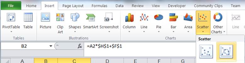 Plot columns B and C in a XY Scatter chart (smoothed lines without markers)