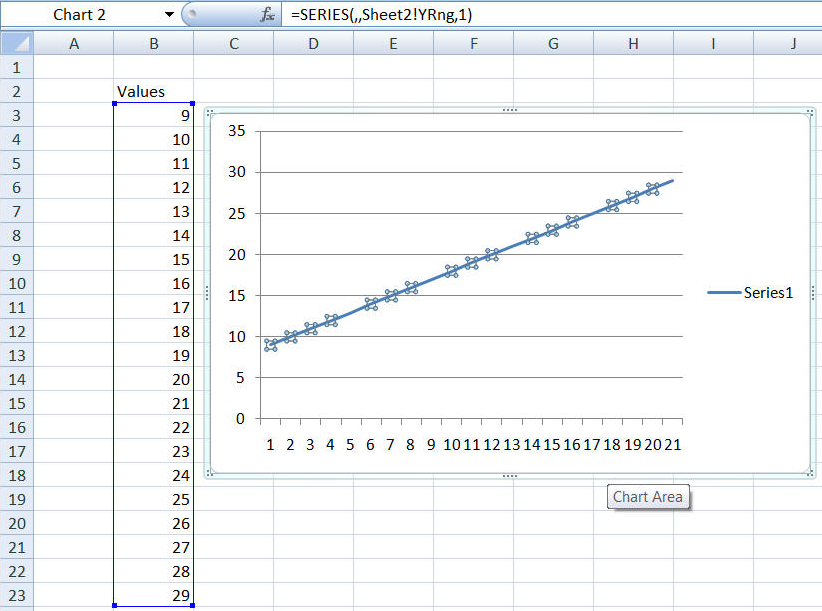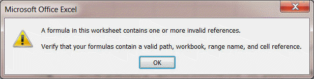 However, it will not work because the Excel charting module requires one to qualify the range reference with the worksheet name. If on were to use the IndirectDynamicRng name in a chart, Excel would show the below error message.
