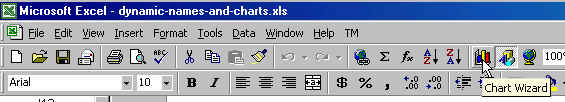 Click on an empty cell that also has empty cells adjacent to it. Select the Chart Wizard button |