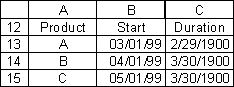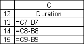 Note that the Duration column contains the formulas: