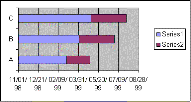 Consider a company that wants to manufacture new toys every so often. It has three products codenamed A, B, and C respectively. Management would like a chart illustrating when each product will be made. The firm's production plans are: