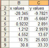 Also, suppose that the ranges containing the X and Y values are named XVals and YVals respectively. If necessary, use Insert | Name > Define... to name cell ranges.