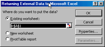 Back in Excel, put the data in an existing worksheet