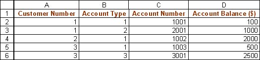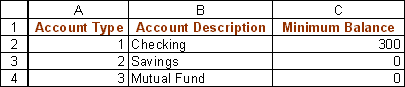 The Account Type table identifies the types of accounts the bank offers and looks like: