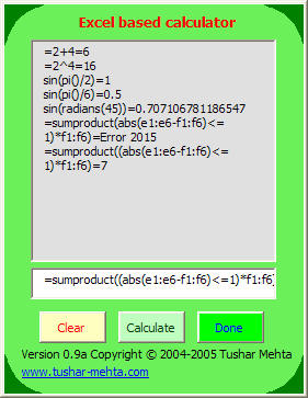 This is a very different calculator than the traditional ones we are accustomed to. Enter any formula into the white box and press the Enter key or click the Calculate button. The result will appear in the gray box.