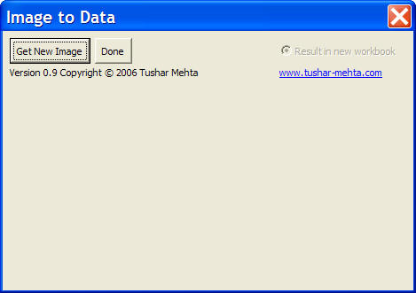 For more details on the installation process, see Common Installation Instructions for Office add-ins Using the add-inUpon selecting TM | Chart Utilities > Data from Chart Image... the default dialog box will show up.