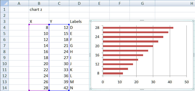 After swapping the X and Y ranges, the result looks like: