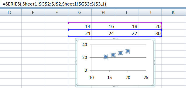 2) The data can also be in rows. In this example, neither the X nor the Y range has a header.