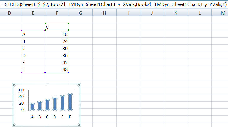 After conversion to a dynamic chart, the chart series uses software generated named formula.