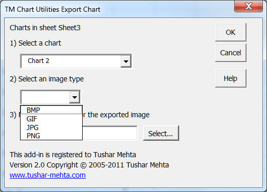 The add-in shows only those image types that the currently running version of Excel supports. In the example above, Excel 2010 could export in any of four file types.