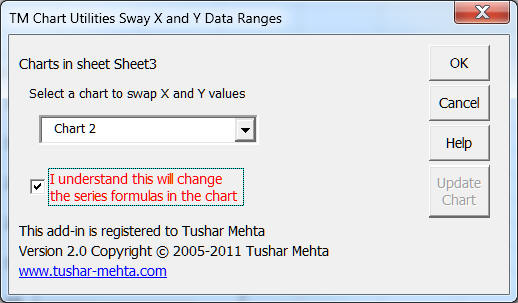 Since the software must change the formulas used in the chart, there is a checkbox to approve the change.