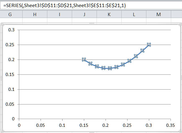 By default Excel will plot this with the expected return on the x axis and the standard deviation on the y axis.