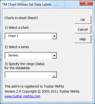 By default, a data label can refer to the series name, the x value, and/or the y value. While it is possible to use some other cell as the data label it cannot be done through the Excel user interface (UI). The function of lets one specify a range other than the x or y values as the source for the data labels.