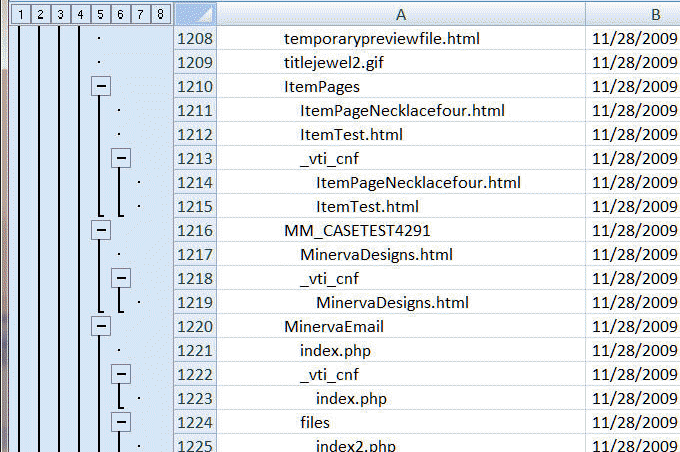 Show Outline causes the add-in to group the nested folders using Excel's Outline Group feature. Note that this Excel feature is limited to 8 nesting levels. Consequently, the Outline Group feature will control only the first 8 levels of sub-folders and files.