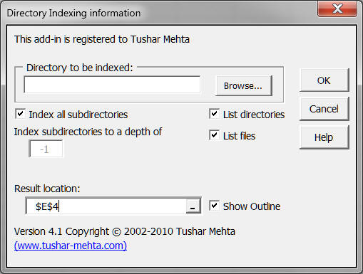 4) A change in behavior in an unregistered add-in after the trial period. Before version 4, after the trial period an unregistered version of the add-in provided a list of all files in all subfolders in the specified folder. Now, it will display a "Add-in Expired" message and request the user to acquire a registration key for the add-in.