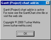 When the Gantt Chart add-in first loads it displays the following dialog as an alert that it is running: