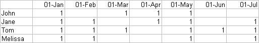 The software provides tremendous flexibility since it leaves the interpretation of the data in the table to the user. For instance, in the table above the names of the people could just as easily correspond to tasks.