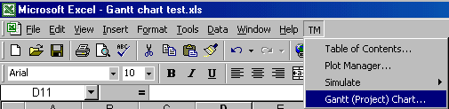 The add-in adds the Gantt (Project) Chart... item under the TM menu.