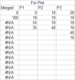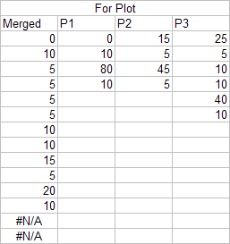 It is important that individual data sets are specified separately. Even if they are in adjacent columns (or rows), do not specify them as a single range. In the examples below, even though the P1, P2, and P3 information are in adjacent columns, the correct way to use the function is the specify each column separately.