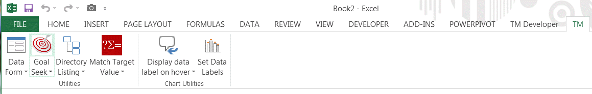 This will bring up the TM Goal Seek dialog box. It includes the same fields as the standard Goal Seek dialog box. Functionally, the two dialog boxes are the same but the TM Goal Seek box allows more flexibility.