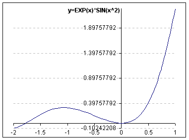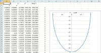 3) The graphs are much smoother since the add-in concentrates its efforts on those parts of a graph with a greater curvature. The graph in Figure 1, the result of the TM Plot software, is uniformly smooth. By contrast, Figure 2, drawn from equally spaced values using Excel's Data Table feature, has an obvious kink where the graph crosses the x-axis.