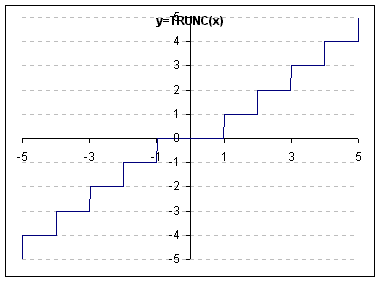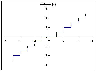 To help answer that question, we look at the same function, Trunc(x), plotted from x = -5 to x = 5 (as shown below).