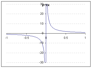 In the two examples above, the y-axis is restricted to values between -20 and +20. Note that the result of the Excel table now looks much better. However, the asymptotic nature of the graph is still more easily noticed in the PLOT Manager output.
