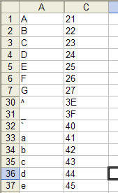 Common SetupFor all but the first example, the data are assumed to be organized as follows. Column A of the active worksheet lists the character to be encoded. Column C lists the corresponding code to use as a 2 character hex code. The string being encoded is in E1. The first three functions are used in an Excel worksheet as shown in Figure 2.