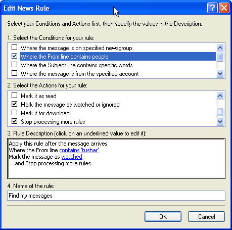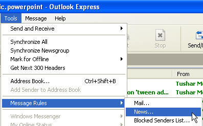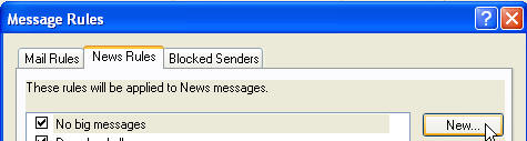 To create a rule, start by selecting Tools | Message Rules ► News...