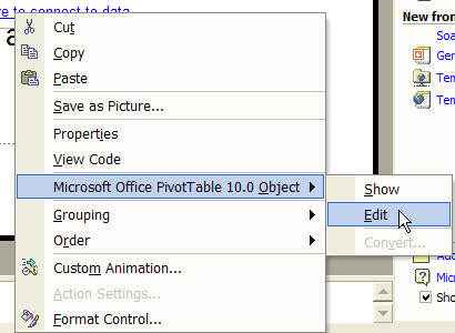 Microsoft Office PivotTable 10.0 Object ► Edit.