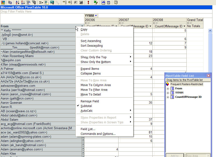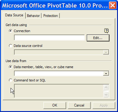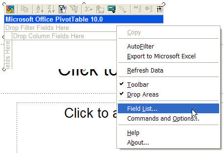 the Microsoft Office PivotTable 10.0