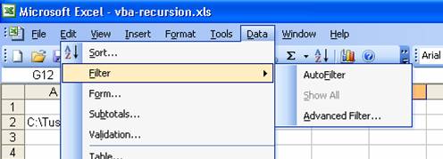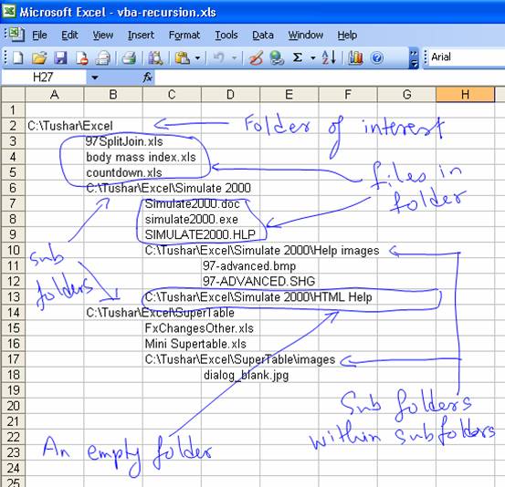 DoOneFolder FSO.GetFolder("c:\tushar\excel"), RowNbr, 1