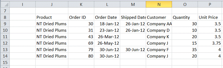 The requirement translates to the criteria: Product=”NT Dried Plums” and Quantity >30. Since this is an AND condition, the two individual conditions will be on the same row. Also, it is enough to include only those column headers that contain a condition as in Figure 5.
