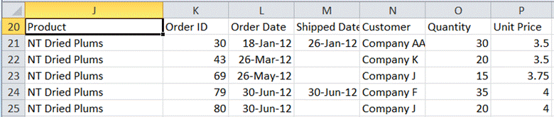 The result, shown in Figure 4, lists all the product orders that relate to NT Dried Plums.