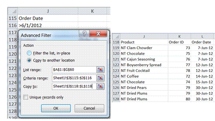 One final note on working with another workbook: Even when copying the data to another location, the source workbook must be open for Advanced Filter to work.