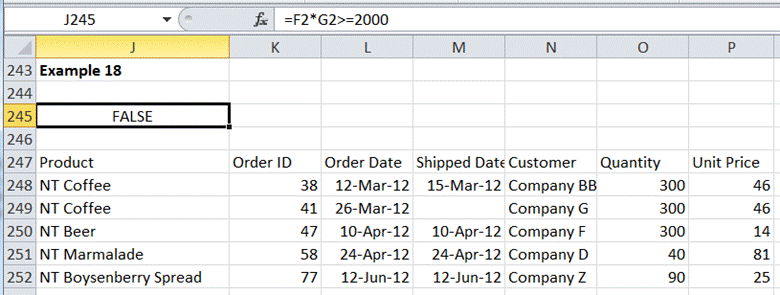 This is also similar to the previous example of 2 conditions on the quantity ordered (Example 3). Simply enter the conditions in the 2 cells as shown in Figure 17.