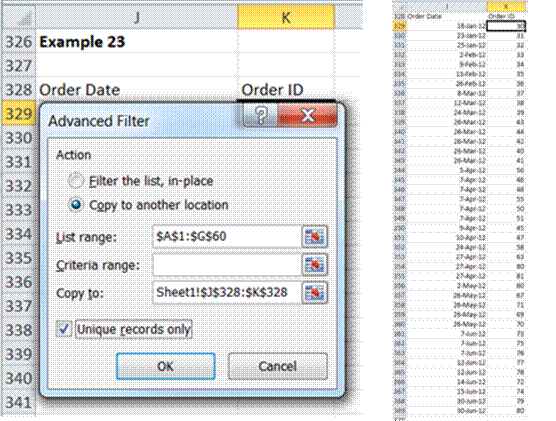 The one element of the Advanced Filter dialog box that has remained unused has been the Unique records only checkbox. Select it to ensure that the result contains only unique records, where uniqueness means that no 2 rows have the same value in all the output columns.