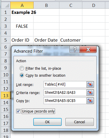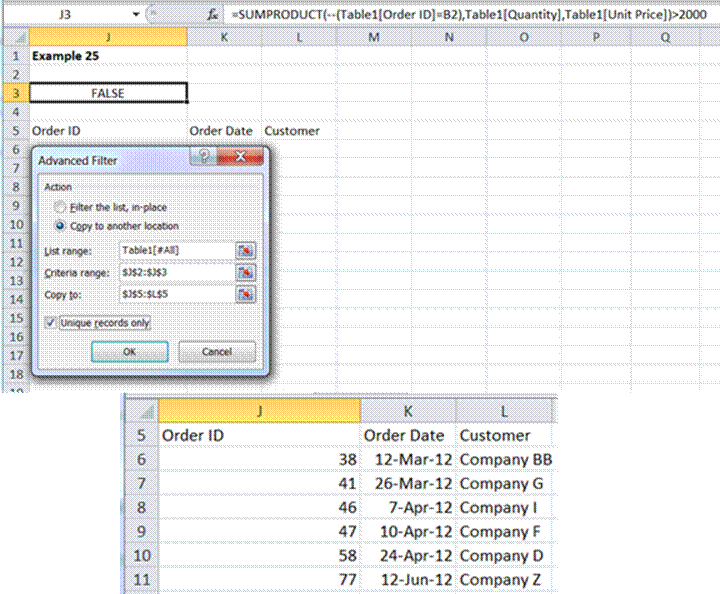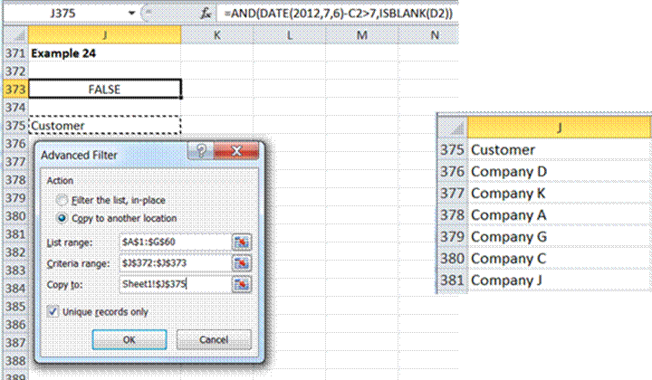 Example 21: Advanced Filter criteria with a workaround to an array formula