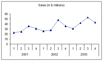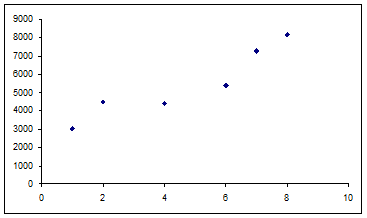Data for two months are missing but in general, it would appear that there is an upward trend with a growth in sales as time goes by. However, beyond that what can we conclude? Can we estimate the sales for month 9? Or, can we tell the rate at which sales are increasing? Not really. However, with a systematic analysis of the data, we can get a lot more information.