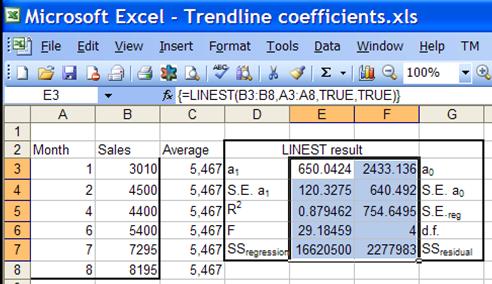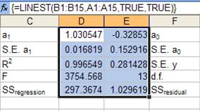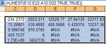 [1] The original data set is not presented since the individual values are irrelevant to understanding the results of the LINEST function.