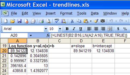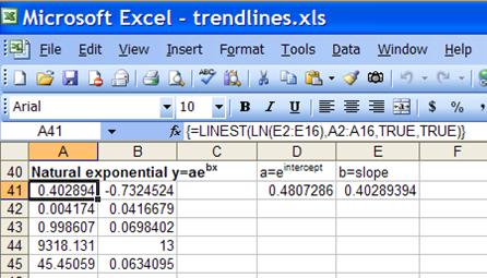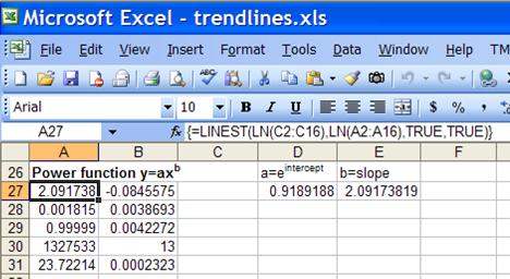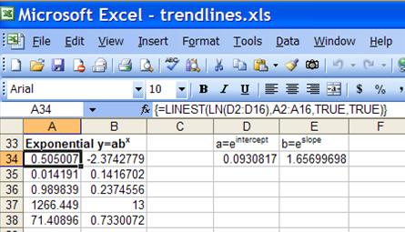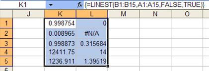 analysis, select a range 5 rows by 2 columns and array-enter the LINEST function