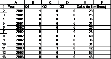 While the trendline is of some value, if we were to use the information in any analysis, it would help to have the data in worksheet cells and not as text in a chart. In addition, consider the case in which the dependent variable (sales in the above example) was a function of not one independent variable (month in the above example) but multiple variables? Known as a multiple regression, a graphical analysis would require what cannot be done in Excel: an n‑dimensional graph. The section on Linear regression with multiple variables addresses how this can be done in an Excel worksheet.