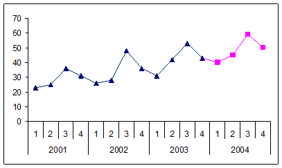 A good start would be to plot the data as shown in Figure 1. Now, the upward trend is a lot more obvious. |