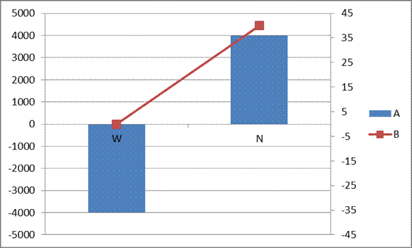 Figure 2 shows the default result. It’s easy to misinterpret the chart since the negative value of the A series W point appears above than the zero value of the B series W point!