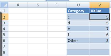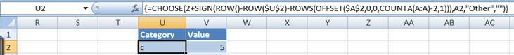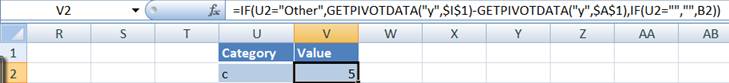 The formula above shows the category from the original PT if the row is less than or equal to the number of rows of data in the PT. If it is one more, it shows the literal 'Other' and the zero length string "" for all other values. In V2 enter the formula