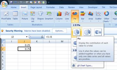 Start by entering in some cell, say J1 the value 0.25. In J2 enter the formula =1-J1. Select these two cells and create a pie chart.
