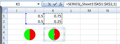 Press ENTER and the 2nd pie chart will now reference K1:K2.