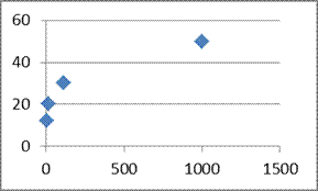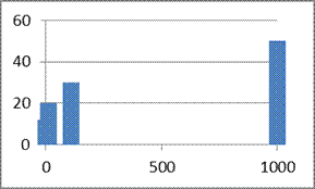 The x-axis of a Column Chart can contains either category values (the x values are equidistant) or dates. Neither of these allows for a truly numeric x axis. This tip shows how to simulate a column chart that has cardinal numbers on the x axis (cardinal numbers contain a sense of ‘distance’ – e.g., 97 is 2 more than 95, 7 more than 90, and 3 less than 100). Of course, once the axis supports cardinal numbers it also becomes possible to convert it to a logarithm (or log) scale.