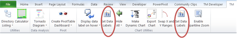 The problem is that with both add-ins installed the UI displays two buttons, both labeled Set Data Labels, that do the same time. It looks clumsy, to say the least. For a sample see Figure 1.