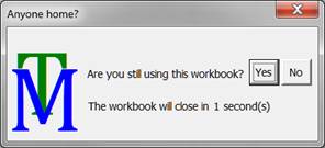 The code in the ufCheckCloseWB module is relatively simple. The No button and the Yes button click events are shown below. They essentially call the already programmed routines closeWB and endTimer respectively.